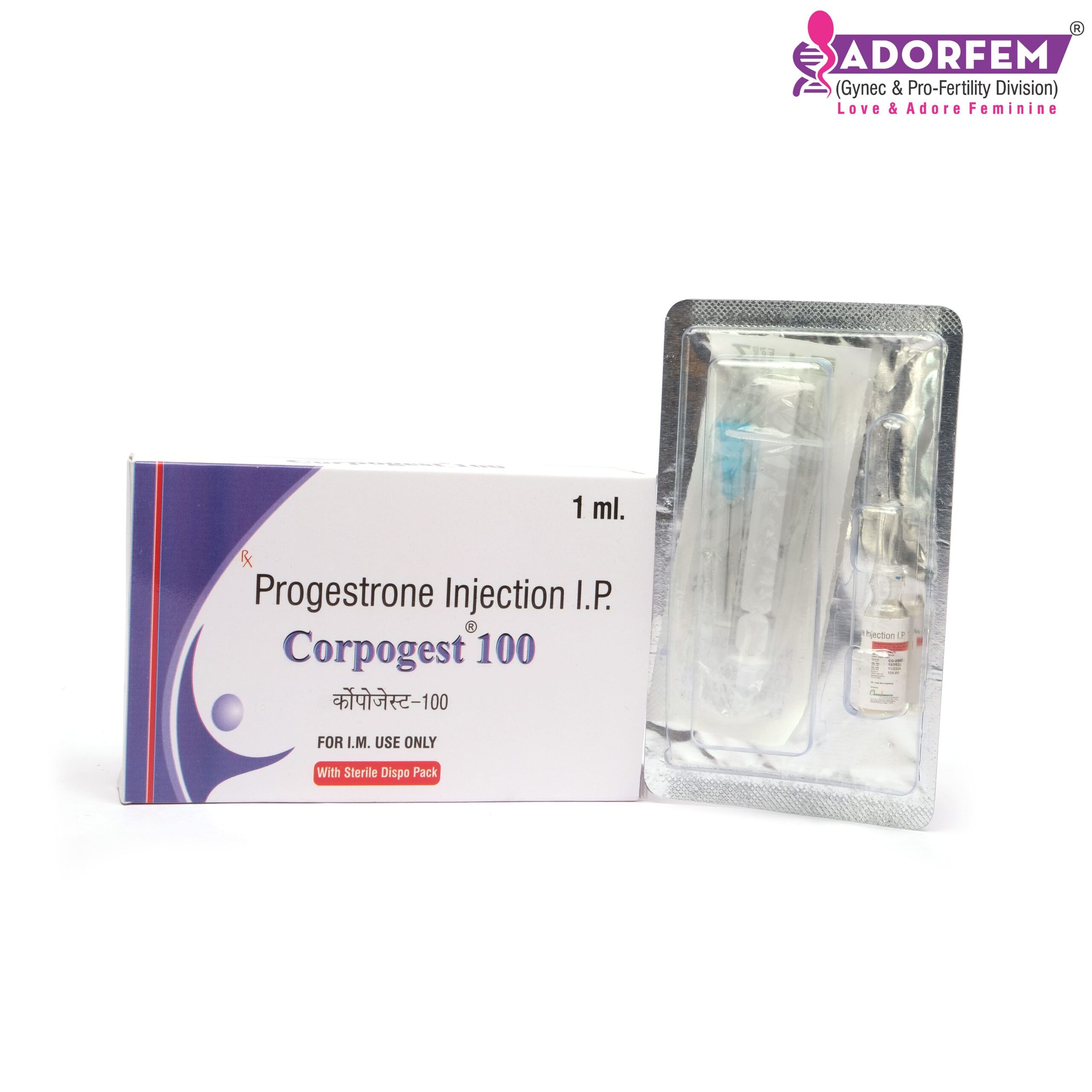 Natural Micronised Progesterone Injections are a drug medication under the branding of Corpogest-100. These progesterone injections contain progesterone, a female hormone that is one key factor of a good and healthy pregnancy in women. It brings menstruation by bringing the levels of progesterone hormone in a woman’s body to a sustainable state, which natural progesterone is not capable of doing in some cases. Progesterone works by restoring hormone imbalance and preventing the increase of endometrium by the action of estrogen.