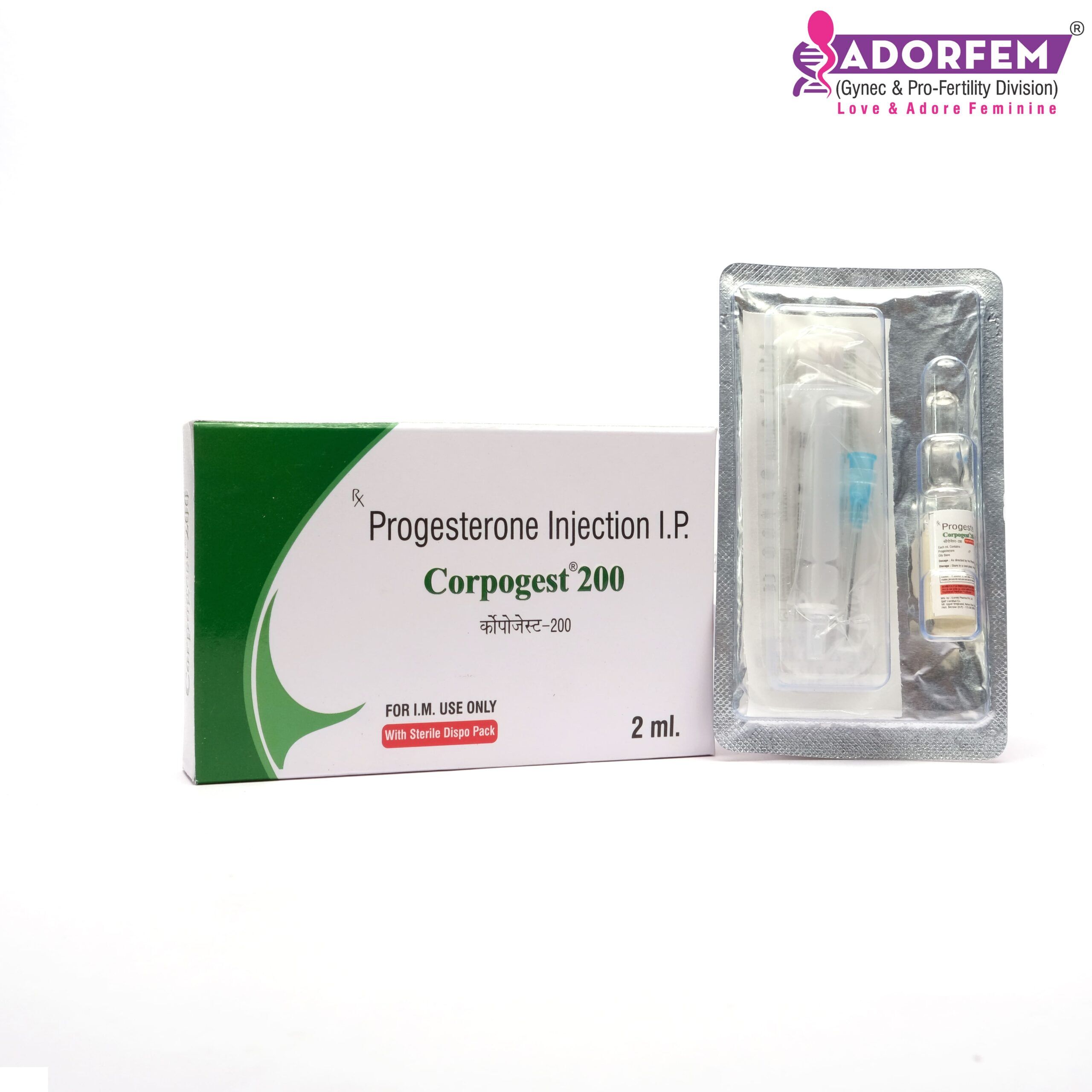 Corpogest-200 injection is composed of natural salt called progesterone which is found in females. It is basically female sex hormone which is responsible for the normal functioning of uterus, menstrual cycle, and fertility. The progesterone hormone plays a significant role in fertilizing the egg for pregnancy.
