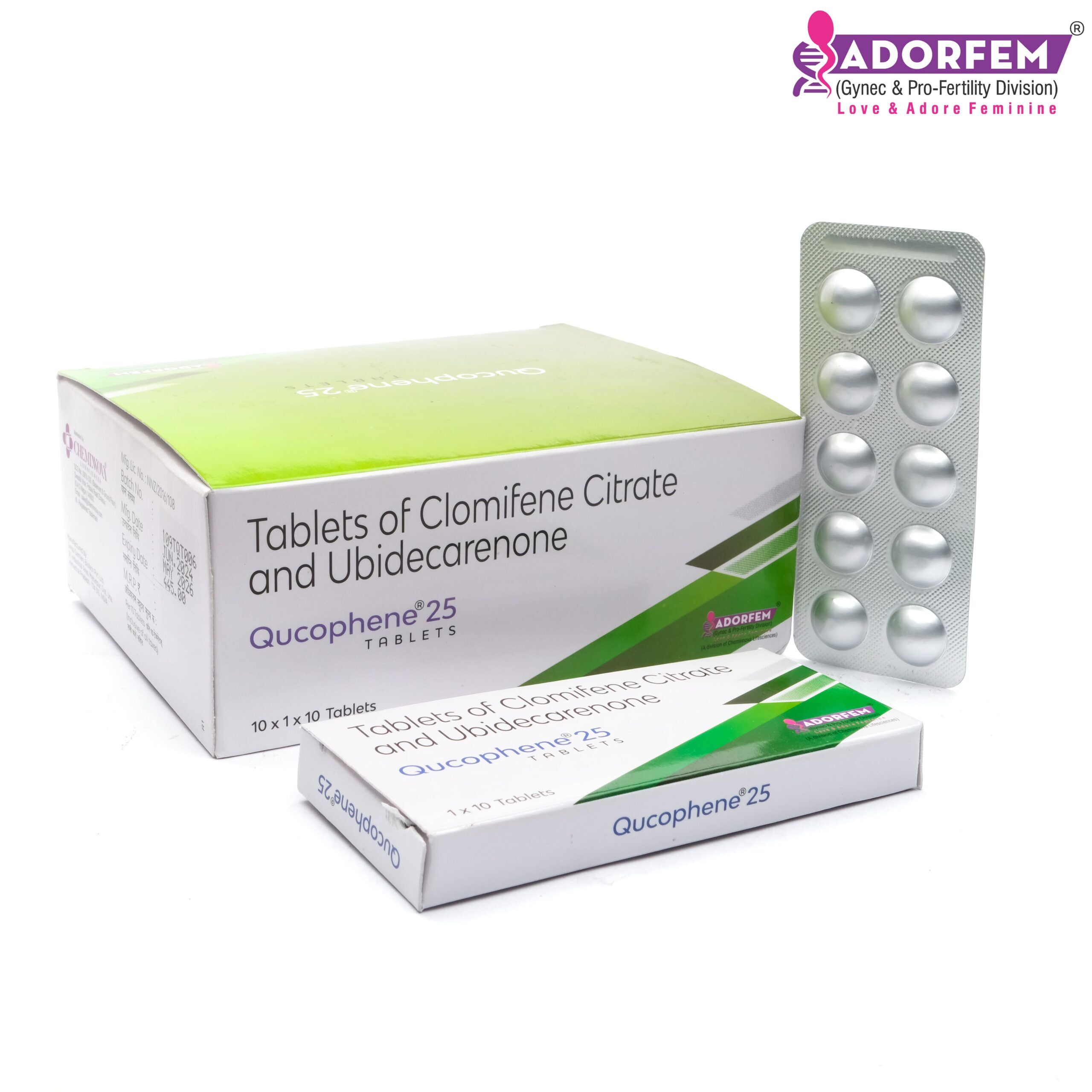 These Clomifene Citrate and Ubidecarenone Tablets are supplied and manufactured by Adorefem under the brand name Qucophene-25. We do not directly promote the usage of these tablets. You should only use them when prescribed by your doctor.